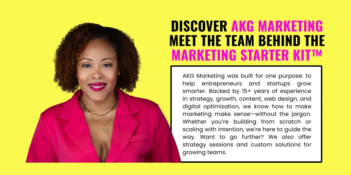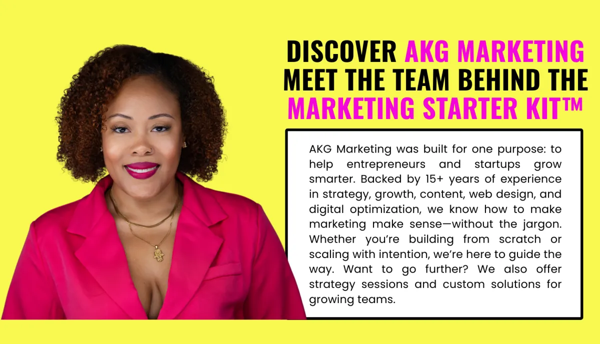 At AKG Marketing, we provide small and startup businesses with comprehensive and tailored marketing solutions. Our team of experts brings a wide range of expertise in business strategies, business growth for startups, web design, marketing optimization, customer discovery, and more. We also offer a practical and results-focused Marketing Starter Kit to help businesses lay a strong foundation for sustainable success.